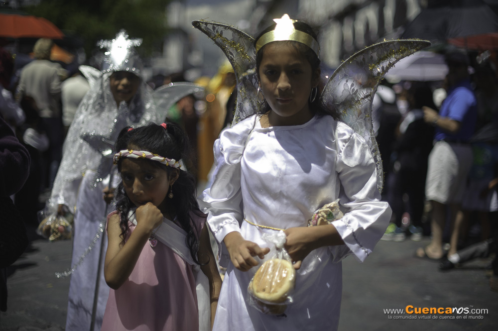 Como es costumbre cada año cientos de Cuencanos disfrazan a sus hijos de Angeles, Pastores, Maria Jose y por supuesto a Jesus recordando el nacimiento de nuestro señor Jesucristo. La Calle Bolivar es escenario para que muchas personas admiren esta tradición Cuencana que esperamos que nunca deje de existir..